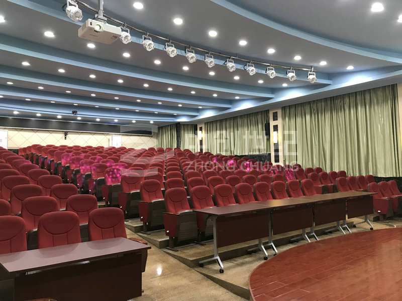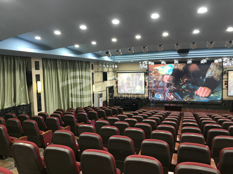 深圳市福田區(qū)華強職業(yè)技術學校綜合樓禮堂觀眾區(qū)面積約2000平方米,其中寬約35米,深約55米,空高約24米,頂棚裝修后凈高約為27米。禮堂舞臺臺口寬約17.5米,高約5.8米,深約14.8米。