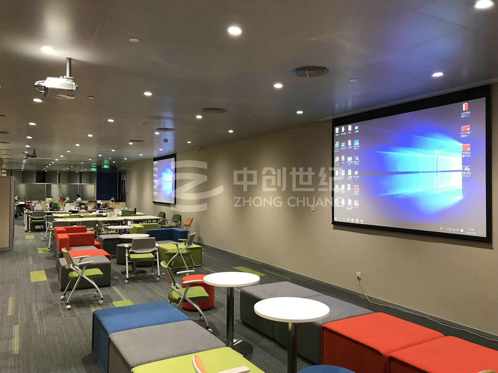 七個區域均可互聯互通,音視頻信號可以任意分配到不同的課室或區域,七個區域可同步播放顯示同一個信號源的信號,也可獨立顯示、播放不同信號源的信號,十一層與十層信號互通。
