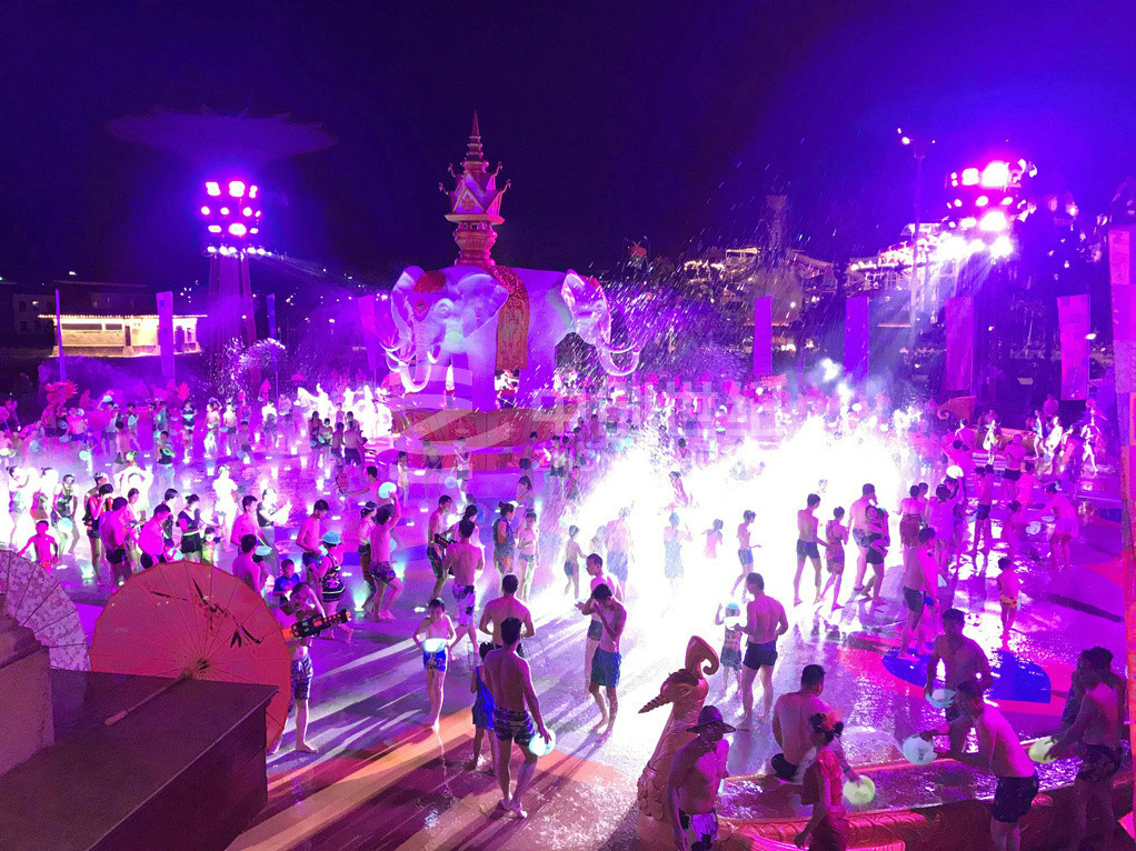 潑水廣場(chǎng)是玉林克拉灣斥資1500多萬(wàn)元建造的廣西大型專業(yè)娛樂項(xiàng)目。廣場(chǎng)潑水面積超1200平方米,運(yùn)用傣族基本元素,并結(jié)合當(dāng)?shù)匚幕瑯O具民族風(fēng)情。