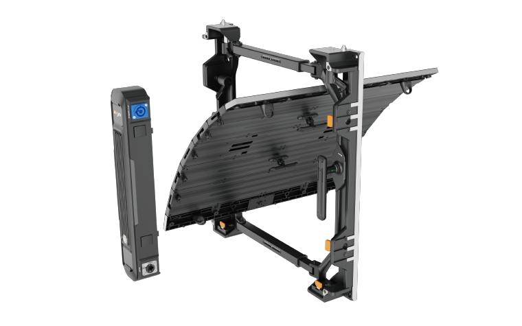 ⑥ 吊裝堆裝皆可,曲線依然:FL系列設計了小巧靈活的吊裝塊配件,以及前端帶有獨立連接片的專用配套支撐架配件,完美適配各種造型的弧形屏體安裝需求。