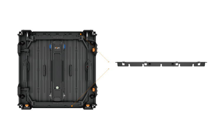 ⑦ 加裝直邊結構,可搭直屏:FL系列產品在交付時每個箱體會標準配備兩條直邊結構,方便客戶搭建常規直屏,該結構配件有助于瞬間提高直屏屏體平整度,帶來更愉悅的視覺效果。